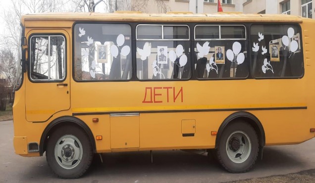 В рамках акции педагоги и активисты школ разместили на школьных автобусах фотографии своих родных и близких — участников Великой Отечественной и тружеников тыла.