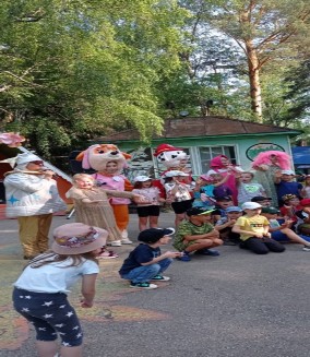 К вопросу детского отдыха подошли системно, разработана программа 'Летний переполох и хранители детства". В роли хранителей детства выступают педагоги и родители. Замечательное театрализованное представление собрало дошкольников на праздничном вечернем мероприятии. Дети дали клятву дружить, делать утреннюю зарядку, не грустить, весело и интересно проводить время. С Машей отправились на поезде счастья в Лето без интернета.