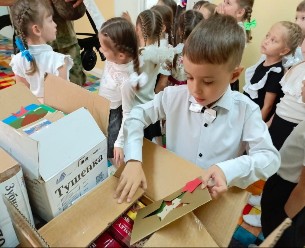 В этот же день родители воспитанников и сотрудники детского сада приготовили для отправки посылки для солдат, находящихся в зоне СВО.
