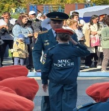 В конце церемонии прошёл торжественный марш кадетских классов, знакомство с техникой МЧС и полевая кухня!