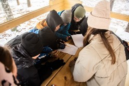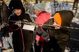 На туристской полосе препятствий участники вязали узлы, накладывали повязку и транспортировали пострадавшего, преодолевали параллельные перила, спуски и подъемы.