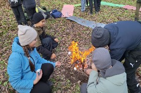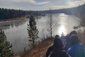 Запомнился и поход на Синие скалы. У подножия величественных скал, у пылающего костра, ребята не только согрелись и подкрепились, но и наигрались на свежем воздухе, любуясь неповторимыми пейзажами.