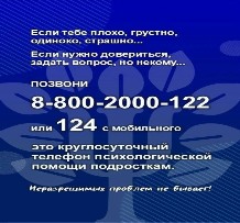 8-800-2000-122 (или 124 с мобильного) — круглосуточная психологическая помощь для подростков,