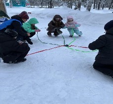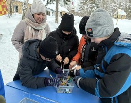 Ребята оказались на волшебной лесной дороге, это "Тропа чудес", которую подготовили педагоги Дома детского туризма. Выполнив интересные задания, команды получили новогодние игрушки, которыми украсили главную ёлку Деда Мороза.